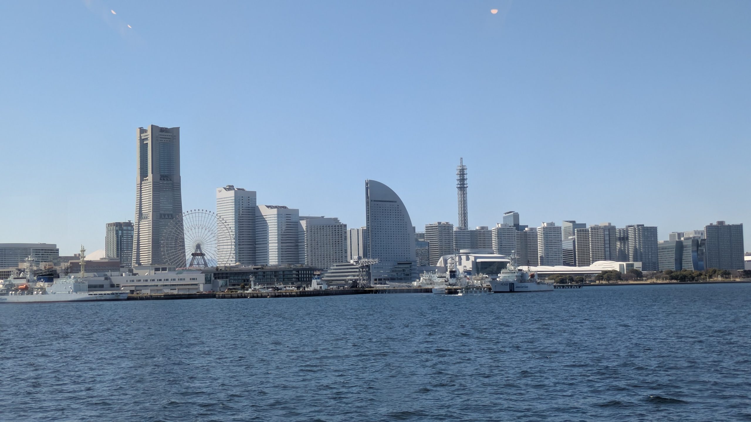 当日は天気にも恵まれ、船がゆっくりと横浜港を離れると、窓の外にはみなとみらいの街並みが広がっていきました。